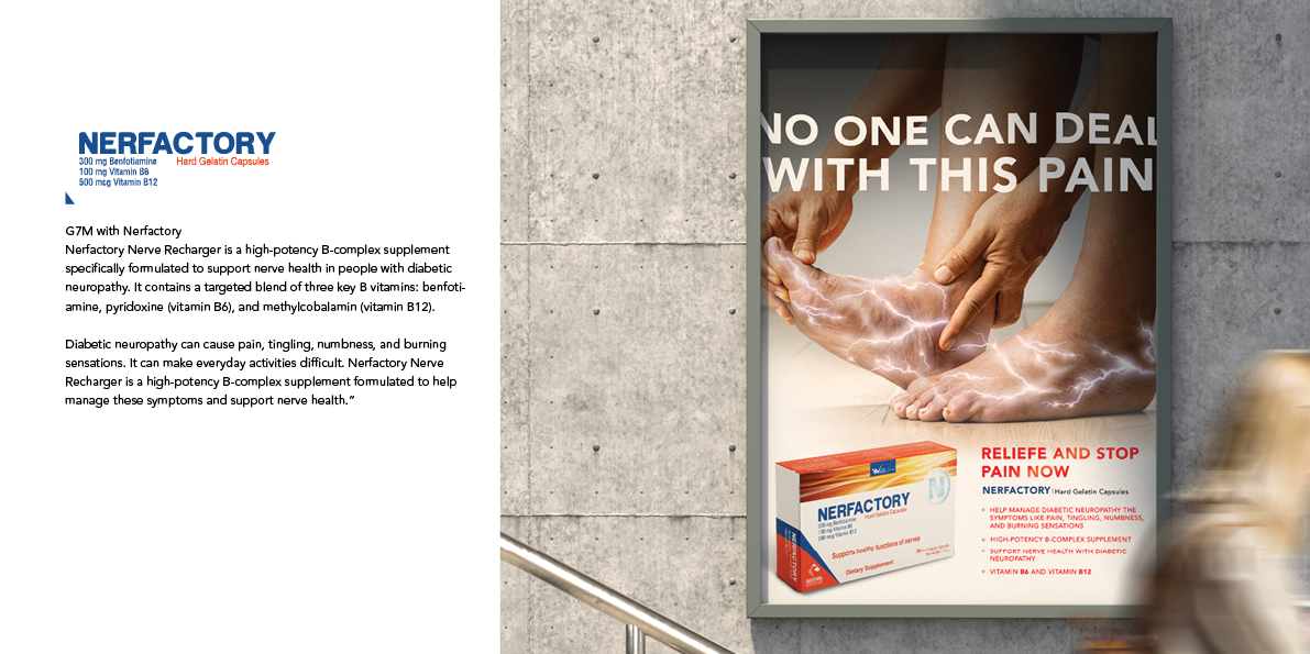 Diabetic neuropathy can cause pain, tingling, numbness, and burning sensations. It can make everyday activities difficult. Nerfactory Nerve Recharger is a high-potency B-complex supplement formulated to help manage these symptoms and support nerve health.”